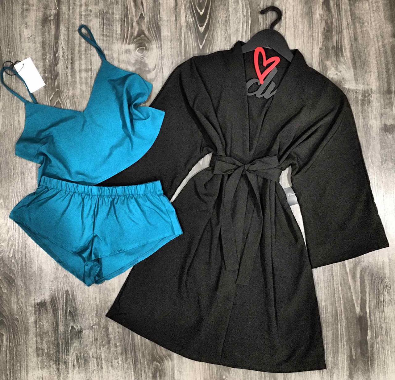 Жіночий комплект-трійка для сну та відпочинку халат + топ + шорти 047-094.